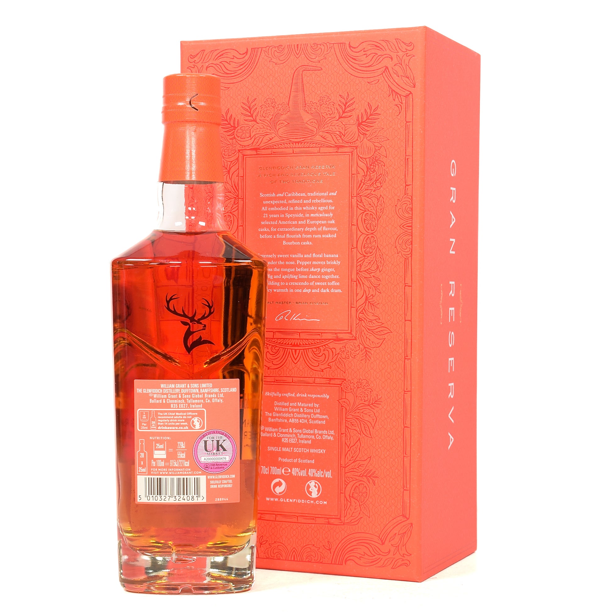 Patiently matured for 21 years on-site at the Distillery, the 21 Year Old Grand Reserva is an exquisite, traditional Speyside whisky, rich and ripe with the Glenfiddich signature notes. But rather than bottle it, as other distillers would, the Malt Master, Brian Kinsman, hand picks selected barrels and adds a sublime finishing touch. By finishing the 21 Year Old in Caribbean rum casks it awakens the liquid, rousing it with extra exotic notes of ginger, fig, lime and banana and a vibrant spicy toffee warmth, elevating it from something great to something extraordinary. Which ultimately, makes it the perfect gift for all occasions.
