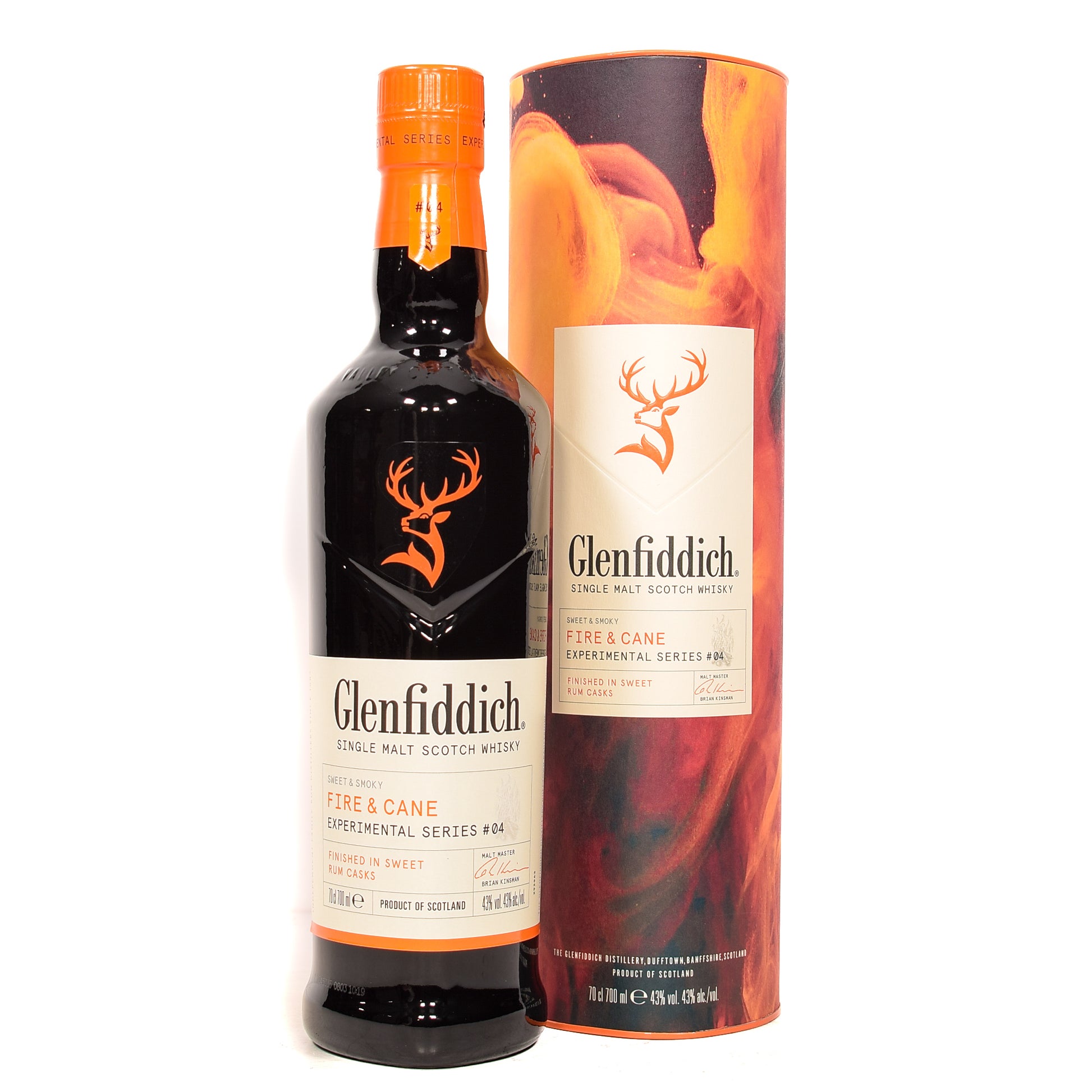 Part of the Glenfiddich Experimental series, the Fire & Cane is a bold fusion of smoky and sweet notes. By marrying peated whisky and malts matured in bourbon barrels, and then finishing in Latin rum casks, Glenfiddich created an exquisite whisky with campfire smokiness and toffee sweetness.