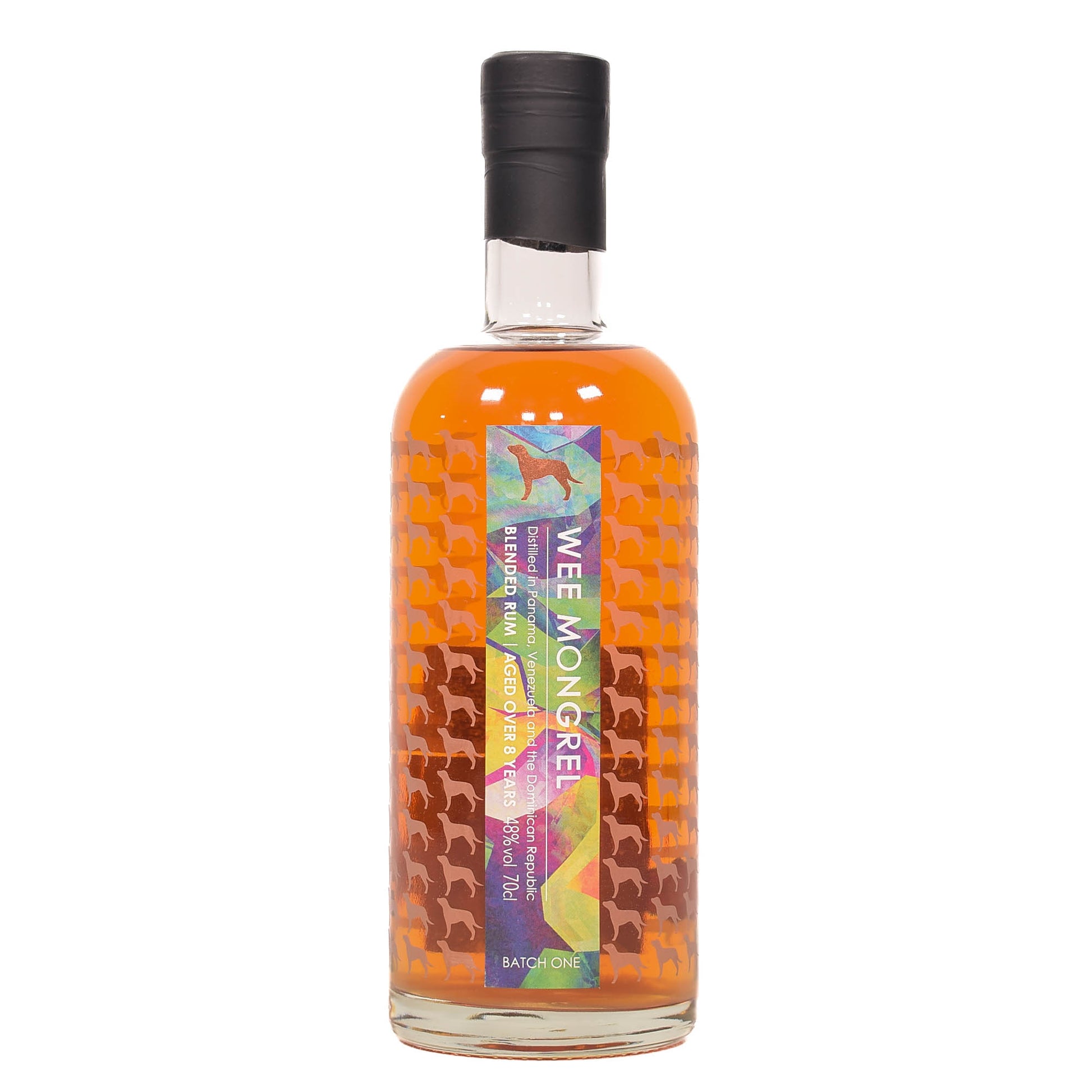 The first batch of the Wee Mongrel Rum was produced in Aberdeen from a blend of Dominican, Panamanian, and Venezuelan rums, each of which has been aged for a minimum of 8 years.