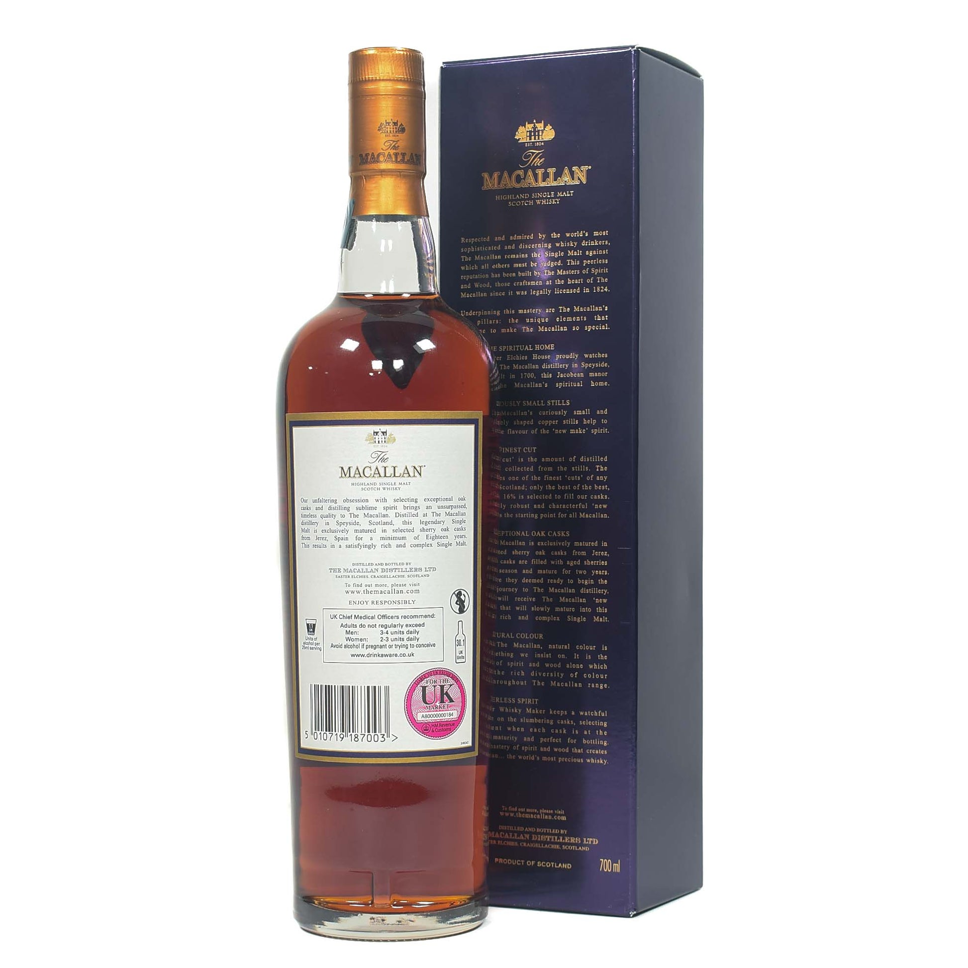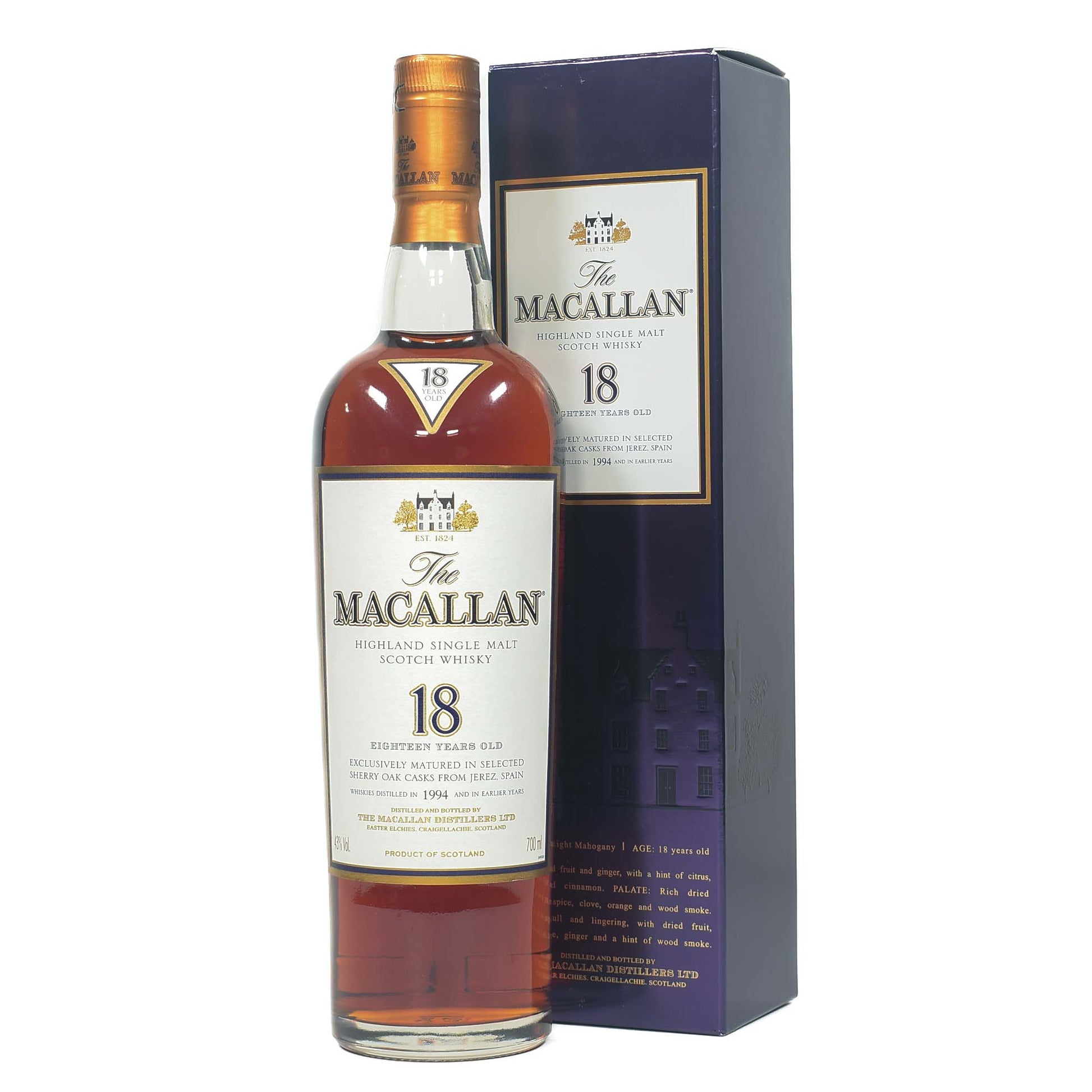 The Macallan 18 Year Old Sherry Oak is a luxurious single malt Scotch whisky, aged in hand-picked sherry-seasoned oak casks from Jerez, Spain. This is Macallans most quintessential single malt whisky. This particular vintage being distilled in 1994