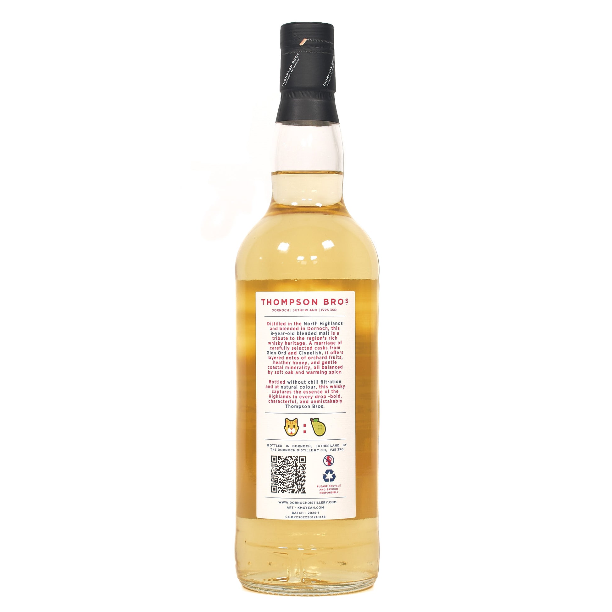 North Highland Blend is an 8-year-old blended malt Scotch whisky from Thompson Bros., crafted mainly from Clynelish and Glen Ord. Bottled at natural colour and without chill-filtration, it offers a bright, waxy Highland character with notes of stone fruits, honey, and subtle minerality. Smooth, approachable, and full of flavour, it delivers exceptional value and captures the spirit of the northern Highlands in every glass.